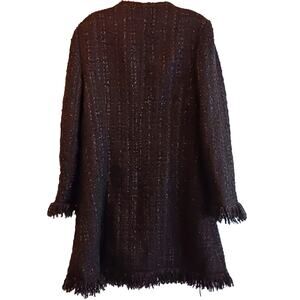 Vertigo Paris Tweed Wool Coat Sz S Brown Metallic Boucle Fringed Preppy France