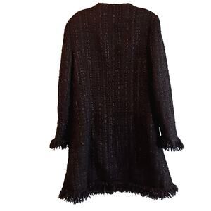 Vertigo PARIS Tweed Wool blend Coat Sz Small Metallic Boucle Fringed Preppy FRANCE