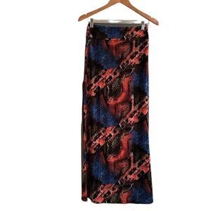 Vertigo Paris Womens Bias Cut Reptile Print Vibrant Maxi Skirt With Slit Size XS