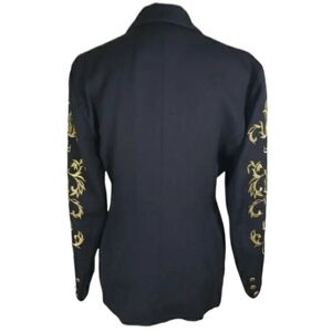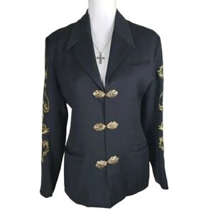 Vertigo Paris~Size L~Black/Gold Embroidered Blazer Jacket Wool Blend.