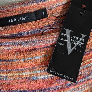 Vertigo Top Space Dye Multicolor Knit Elbow Length Sleeve Round Neck S NWT