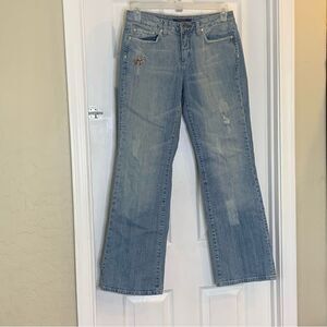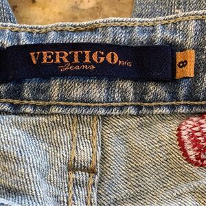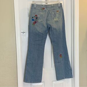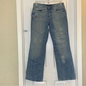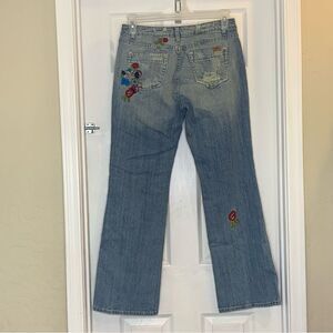 Vertigo Floral Embroidered Distressed Flare Leg Jeans Size 8