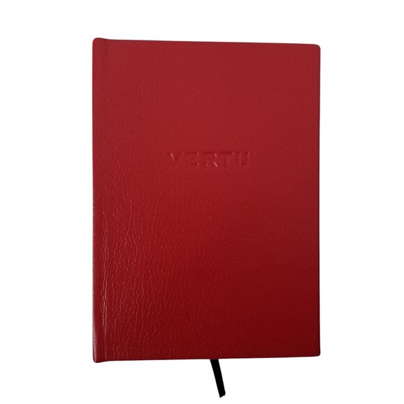 Vertu England notebook in red. Excellent "like new" condition notebook with blank/unruled pages, black edges, and ribbon bookmark.