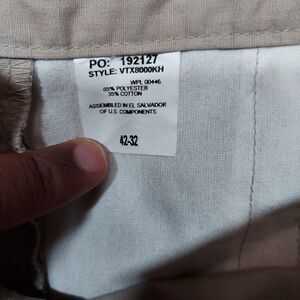 These Vertx Cargo pants are perfect for any occasion, whether it's for work or play. Made with a durable cotton blend fabric, these pants feature a flat front and a wide-leg style. The pants also have an elastic waist and slash pockets for added comfort and convenience. With a khaki beige color and solid pattern, these pants are versatile and can be dressed up or down. The pants have a 5-pocket design with a cargo pocket and button and zipper closures. The Vertx logo adds a touch of style to these pants, which are suitable for winter, summer, fall, and spring.
