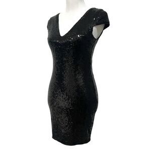 Verty Sequin Dress Black Mini Bodycon V-Neck Stretchy Party Evening Womens Small