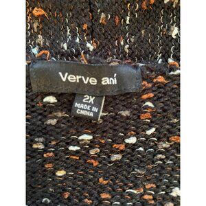 Cozy and stylish Verve Ami open-front size 2X cardigan with fringe detailing, ideal for layering in cooler weather. Easy to care for with machine wash instructions.