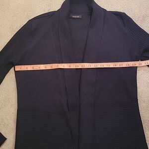 Stay cozy and stylish with this elegant navy open front cardigan. Perfect for layering, this sweater adds a touch of sophistication to any outfit. perfect condition no flaws. sz med