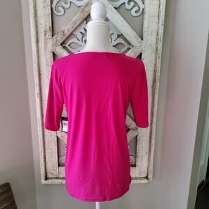 Verve Ami Womens Short Sleeve Pullover Blouse Top with Sleeve Detail Hot Magenta