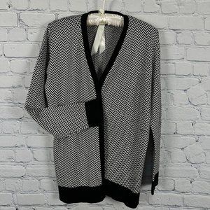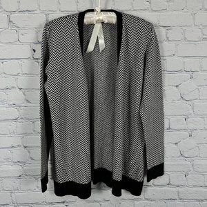Verve ami Open Front Cardigan Sweater, Size Medium, Black/White Chevron Pattern