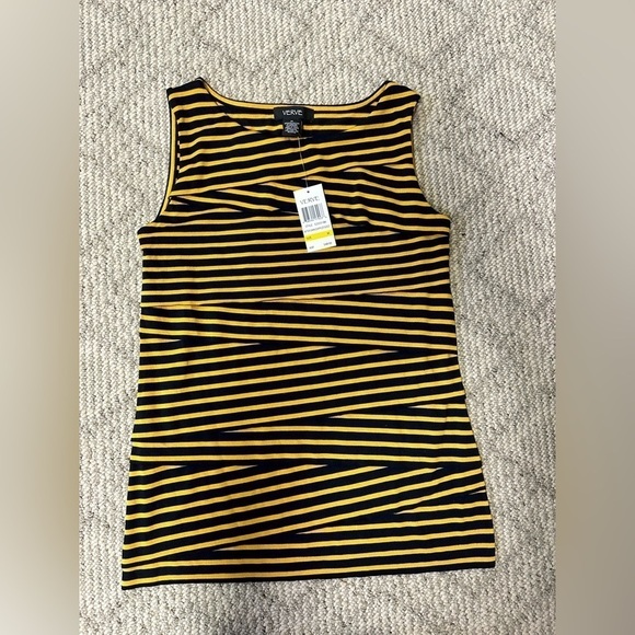 Verve draped sleeveless top mustard and black stripe size M
