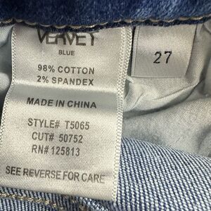 Vervet Blue Distressed Jeans Womens 27 Button Fly Slim Ankle Medium Wash Stretch