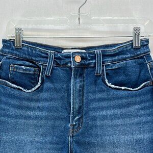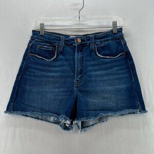 Vervet Blue Jean Shorts Womens M A-Line High Rise Slit Hem Frayed Hem Denim Blue
