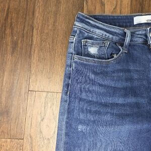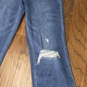 Elevate your style with these classic blue distressed jeans. Perfect for a casual day out. Preloved