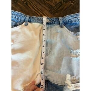 Vervet Color block Denim Cut Off Jean Shorts Women Large Fringe Western Summer