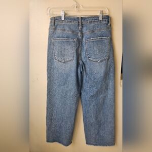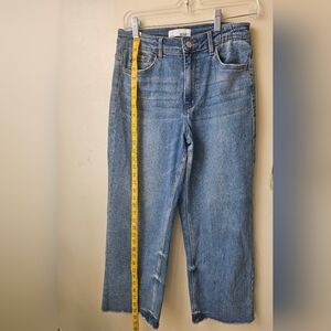 These blue jeans boast a chic cropped ankle length and a straight-leg silhouette, perfect for a contemporary casual style. The raw hem adds a touch of modern flair, making them a versatile choice for any occasion.