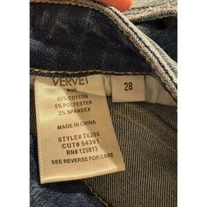 The Vervet Feasibly High Rise Crop Flare Jeans in Women's Size 28, featuring a mid-wash style T6206, offer a trendy yet comfortable fit. Made of 93% cotton, 5% polyester, and 2% spandex, these jeans are perfect for summer, fall, or spring. With a 10.5" rise and a 27" inseam, these cropped jeans are adorned with a 5-pocket design, distressed detailing, and a flare style that adds a touch of grunge and bohemian flair to your wardrobe. Easy to care for with machine washable instructions, these jeans are a must-have for any fashion-forward woman.