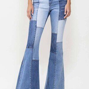 Vervet Flying Monkey Patchwork Flare Jeans VTG y2k Wide Leg Colorblock 25 Stretc