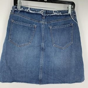 Vervet High Rise Denim Jean Mini Skirt Distressed Retro Raw Hem Sz 28