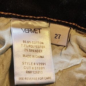 Elevate your denim collection with these Vervet High-Rise Distressed Hem Skinny Jeans in size 27! Crafted from a soft and stretchy cotton-blend fabric (90.5% cotton, 7.5% polyester, 2% spandex), these jeans offer both comfort and a flattering fit. The high-rise waist provides a sleek silhouette, while the distressed raw hem with frayed detailing adds a trendy, edgy touch.