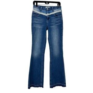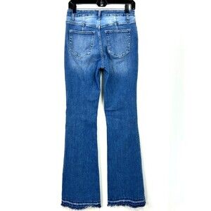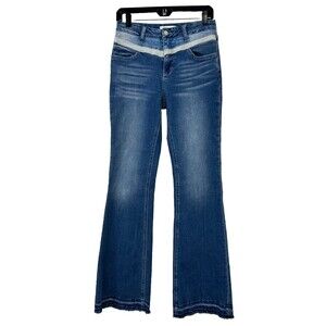 Vervet Jean Women 28 Flare Distressed Raw Hem Mid Rise Stretch Denim Pant 1061R2