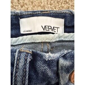 The Vervet Jeans Women's 25 Blue Denim Stretch Mid Rise Fray Distressed Ankle Skinny is a stylish and versatile pair of jeans for women. Made from a comfortable cotton blend denim fabric, these mid-rise jeans feature a zip and button closure, a solid blue color, and a 5-pocket design. The distressed detailing and stretch material give these skinny jeans a trendy and modern look, perfect for all seasons. With a regular fit and ankle length, these Vervet Jeans are machine washable and easy to care for, making them a great addition to any wardrobe.