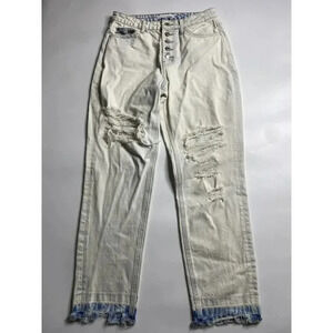 Vervet Jeans Womens 27 Bleach Wash Button Fly Raw Hem Straight Leg Distressed