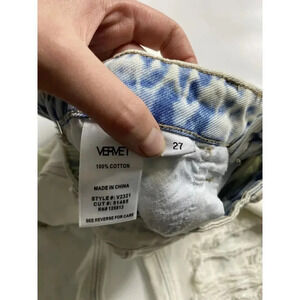 These jeans are made from a spandex and cotton blend fabric, with a denim texture that adds durability. The size is 27, with a waist size of 28 inches and an inseam of 27 inches. The Vervet brand is known for its quality and attention to detail, making these jeans a must-have for any fashion-forward woman.