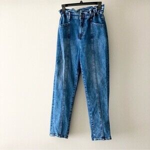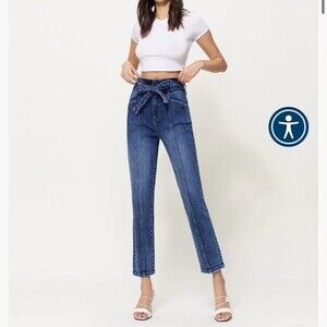 Vervet Plastic Love Stretch Mom Jeans with Belted Waistband and Seamed 27