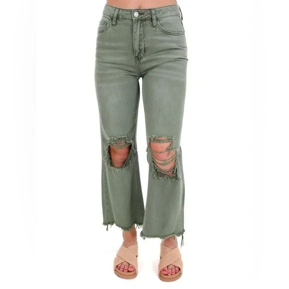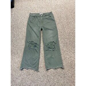 Vervet Super High Rise 90s Vintage Crop Flare Distressed Raw Hem Green 30