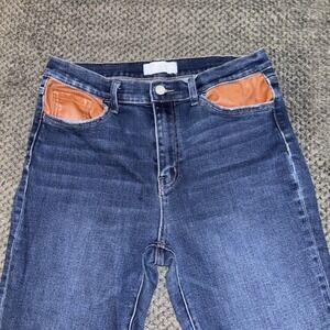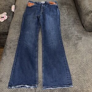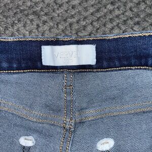 Vervet Womens 31 Bella Medium Rise Flare Blue Denim Jeans Distressed Hem Leather