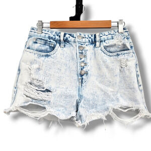 Vervet Women's Acid Wash Distress Cut Off Button Fly Hi Rise Denim Jean Shorts