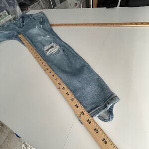 Vervet Women's Straight Leg Distressed Ripped Jeans Light Blue Wash Size 30