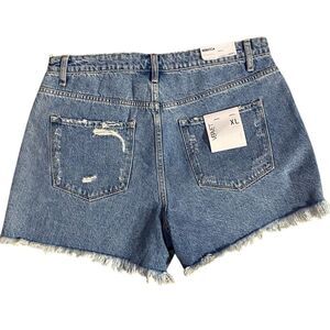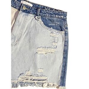 Vervet Womens Blue Denim Rebecca Colorblock Distressed High-Rise Shorts XL NWT
