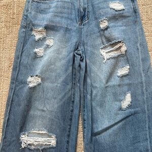 Vervet high rise destructed wide leg jeans sz 25. Excellent condition. Light wash. Raw hem. Cropped. No stretch but super soft fabric.