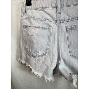 Vervet junior’s Light Wash Distressed Denim Shorts With Frayed Hem