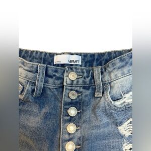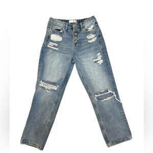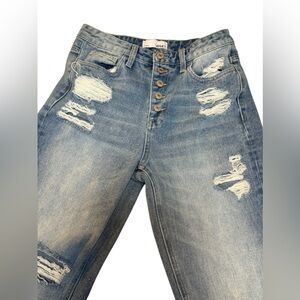 Inseam 25” Waist 14.25” Light wash super high-rise button up distressed jean