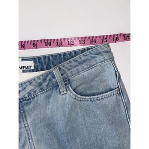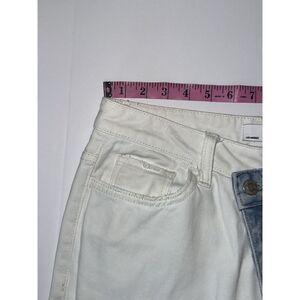 Vervet High Rise Cross Over Two Toned Jeans Rigid Denim Released Hem Crop Sz 28