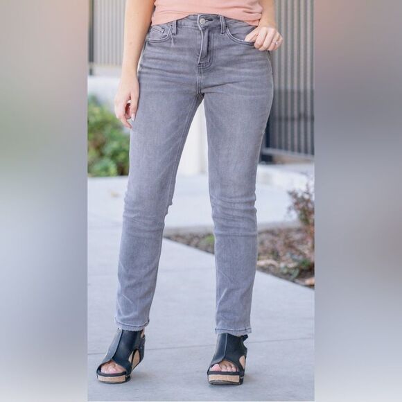 Vervet Jeanne High-Rise Stretch Slim Straight Jeans Grey 32 NWT Daily Look