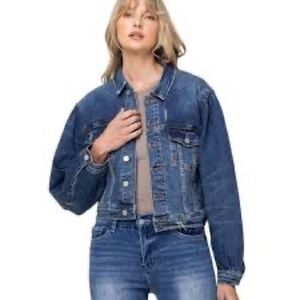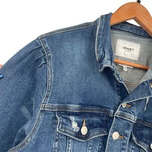 Vervet Los Angeles Puff Sleeve Trucker Button Up Jean Jacket with Pockets Medium