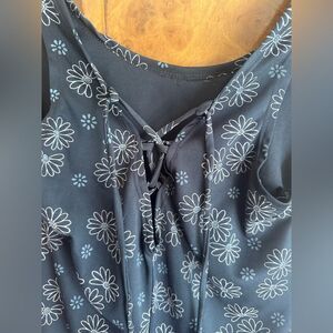 Excellent conditions vintage retro 90s dress with tie neck line and daisy line art design