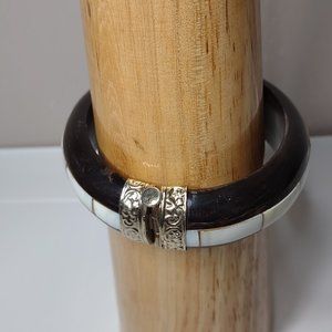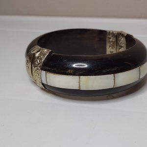 Very Cool 8 Inch Hinged Bangle Made In India. Has A Fair Amount Of Wear As Pictured. Small Crack In One Of The Shell Pieces. Very Cool Bracelet!! Check Out My Closet For Other Great Items!!! Thank You For Considering Making A Purchase.