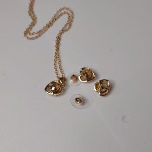 Very Cute Gold Tone Heart Necklace And Earring Set With Pink Stones. Necklace Is Adjustable 16.5 To 18 Inches Long. Check Out My Closet For Other Great Items!!! Thank You For Considering Making A Purchase.