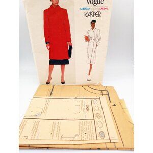 A vintage uncut pattern by Vogue Pattern Service, number 2347, for a Misses coat and skirt ensemble, designed by Kasper, size 8. A very easy design exuding classic elegance.