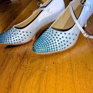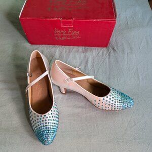 Very Fine Dancesport Women's Satin Dance shoe 9.5 with teal rhinestones