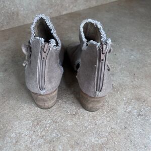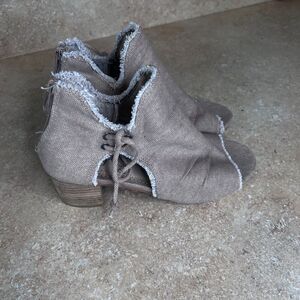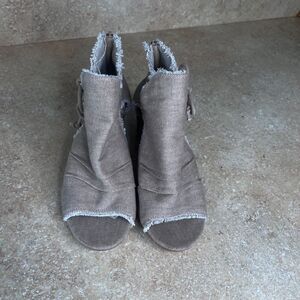 Very G Light Tan Open Toe Cut Out Side Back Zip Chunky Heel Bootie Size 8.5
