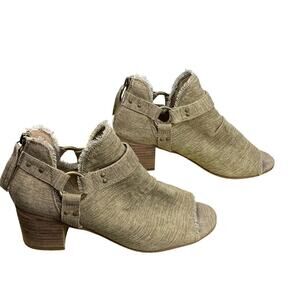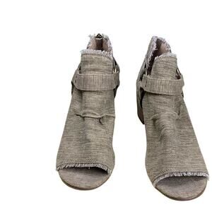 Very G Solange Taupe Peep Toe Frayed Canvas Booties - Size 7