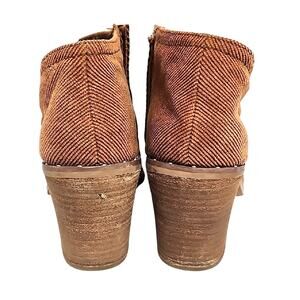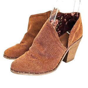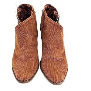 Elevate your wardrobe with these stylish light brown (burnt orange) corduroy heeled boots. Perfect for adding a touch of sophistication to any outfit. These booties are in good preowned condition with gentle wear (see final photo's).