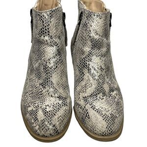 Very G Womens Twinkle 2 White Snake-print Double Zip Heeled Bootie Size 7.5