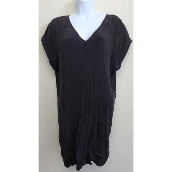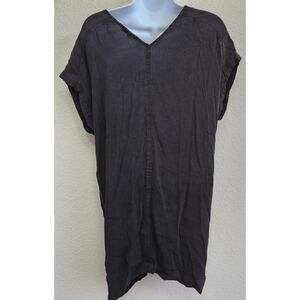 Very J Black Double V Shirt Mini Dress Small Lightweight Soft Pockets Banded Hem