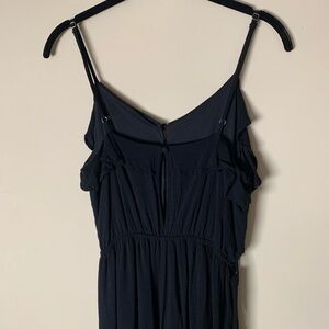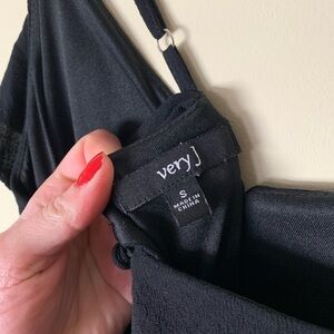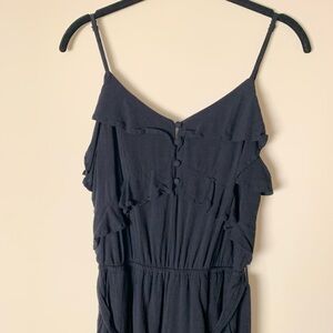 Very J brand. Black jumpsuit size small. Botton front and ruffle details. Tie waist. Cropped length